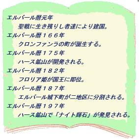 どうやらこれは、旅行者のための本らしい。その本の隣に、見覚えのある背表紙を見つけて手に取って見た。タイトルは『エルバールの歴史』。王宮の図書室にもあった本だ。以前エミーがこの国の歴史を知るなら一番いいと薦めてくれた本だった。中身は読んだことがあるが、何となく最初のページを開いてみた。