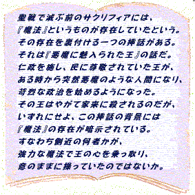 『サクリフィア神話の研究』全文へ(画像の文字が読みにくい方用) 「へえ・・・。そんな神話があるんだな。」