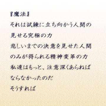 「『再び、このようなことが起きた時こそ、すべての人間が姿を消す』・・。生き物達は人間への攻撃をさらに強めている・・・。廃液が止まったからと言って、私達の犯した罪は消えないっていうことなの・・・?それじゃやっぱり、聖戦は・・・!」
